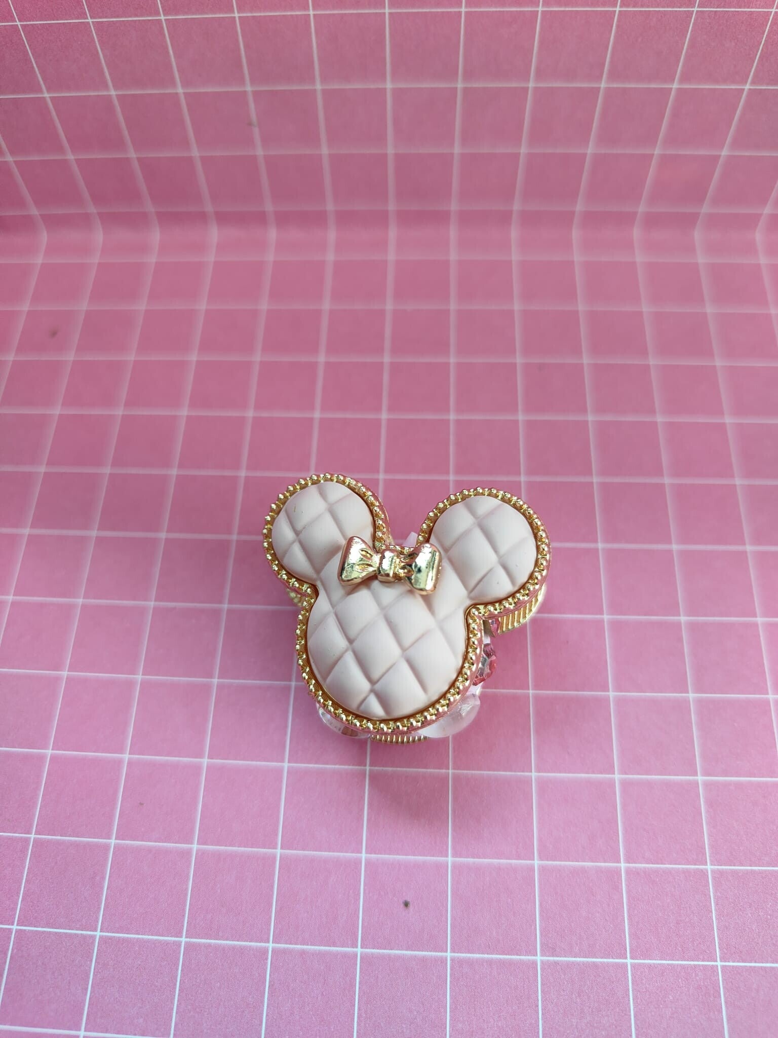 Fancy minnie van metaal in de kleuren zwart,roze en wit. Metaal kleur goud.